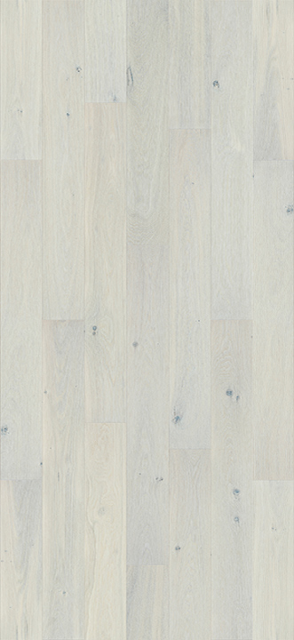 Capuccino Medio trojvrstvová dubová podlaha v doskách s rozmermi 155 mm s uzlovitou triedou. Hrany dosiek sú zo štyroch strán skosené. Povrch podlahy je morený na bielo, chránený matným lakom a zdôraznený kefovaním. Tento typ podlahy je vhodný pre podlahové kúrenie.