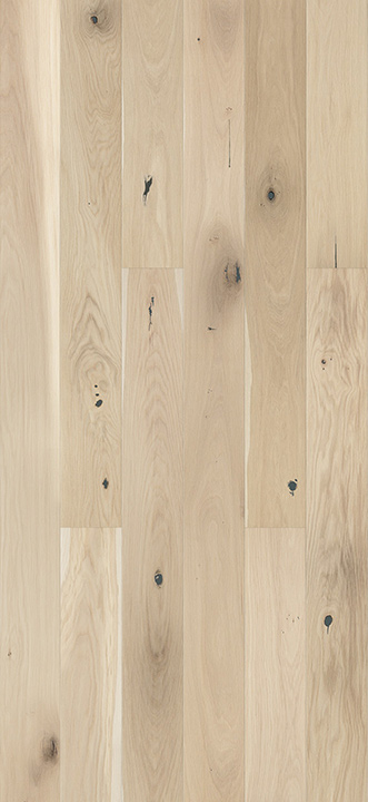 Creme Brulee Grande trojvrstvová dubová podlaha v doskách s rozmermi 180 mm s uzlovitou triedou. Dosky sú zo všetkých štyroch strán skosené. Povrch podlahy je morený na bielo a chránený prírodným olejom. Tento typ podlahy je vhodný pre podlahové kúrenie. Možno ju inštalovať ako plávajúcu podlahu alebo lepiť.