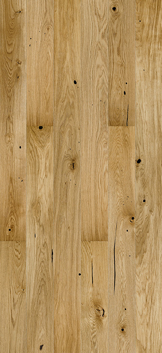 Raisins Grande trojvrstvová dubová podlaha v doskách s rozmermi 180 mm s veľkým množstvom uzlov. Dosky sú zvýraznené kefovaným povrchom a zo všetkých štyroch strán sú skosené. Povrch podlahy je chránený prírodným matným lakom. Tento typ podlahy je vhodný pre podlahové kúrenie. Možno ju inštalovať ako plávajúcu podlahu alebo prilepiť na celú plochu.