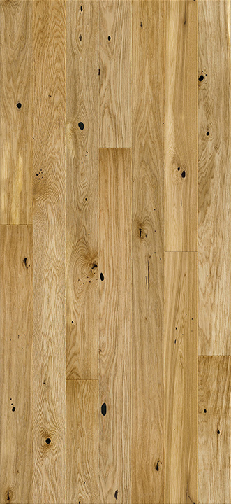 Raisins Medio trojvrstvová dubová podlaha v doskách s rozmermi 155 mm s veľkým množstvom uzlov. Hrany dosiek sú zo štyroch strán skosené. Povrch podlahy je chránený prírodným matným lakom a zdôrazneným kefovaním. Tento typ podlahy je vhodný pre podlahové kúrenie.