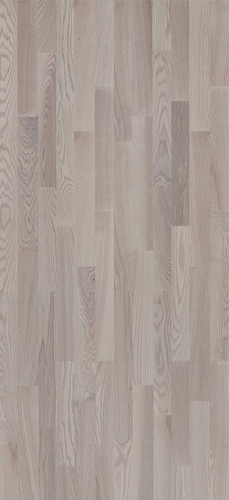 Platinium Molti trojvrstvová podlaha z jasene v parkete s uzlovitou triedou. Povrch podlahy je morený na šedo, chránený matným lakom a zvýraznený kefovaním. Tento typ podlahy je vhodný pre podlahové kúrenie.