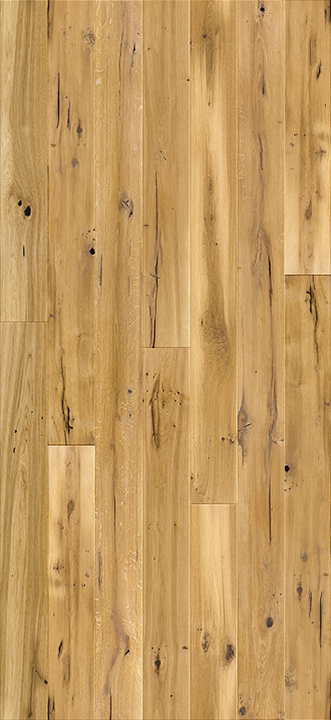 Trojvrstvová dubová podlaha Madeira Medio v doskách s rozmermi 155 mm s vysokým počtom uzlov. Povrch podlahy je chránený prírodným matným lakom a zdôrazneným kefovaním. Tento typ podlahy je vhodný pre podlahové kúrenie.
