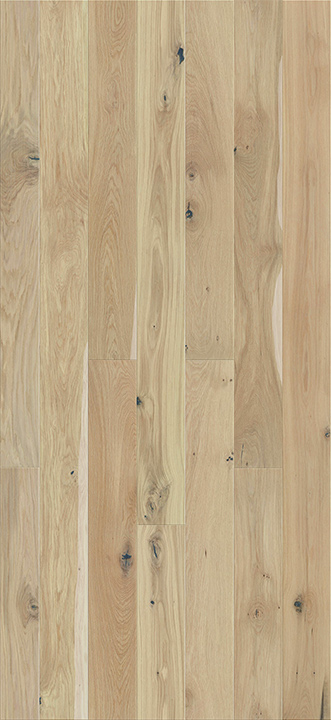 Mont Blanc Medio trojvrstvová dubová podlaha v doskách s rozmermi 155 mm s uzlovitou triedou. Hrany dosiek sú zošikmené na štyroch stranách. Povrch podlahy je bielený a chránený matným lakom. Tento typ podlahy je vhodný pre podlahové kúrenie.