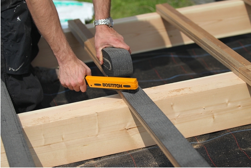 Vďaka tuhosti pásky je jej inštalácia a pokládka na základné laty rýchla a jednoduchá. Na pripevnenie pásky k základným latám použite len niekoľko spôn alebo klincov v primeranom množstve, aby ste pásku bezpečne upevnili pred inštaláciou dosiek.