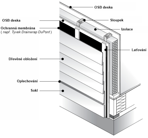 Správna konštrukcia steny zahŕňa aj použitie stavebnej fólie (napr. DuPont Tyvek Drainwrap) alebo stavebného papiera, ktorý je priepustný pre plyny, a parozábranových vrstiev. Tieto materiály sú veľmi účinné pri prevencii problémov súvisiacich s vlhkosťou.