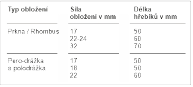 Dôležité: Pri aplikácii na penové obklady pripočítajte hrúbku obkladu k dĺžke klinca uvedenej v tabuľke.