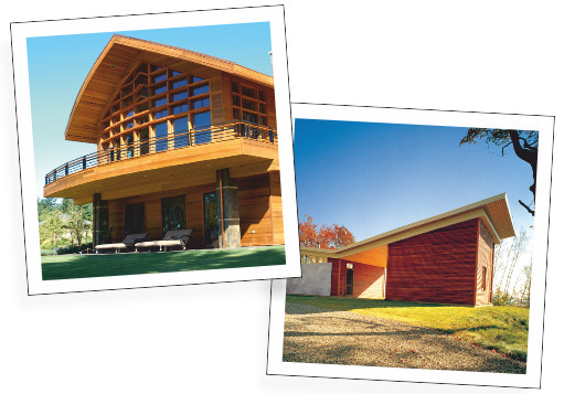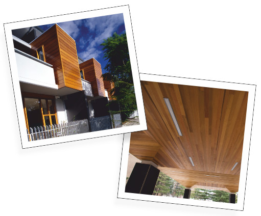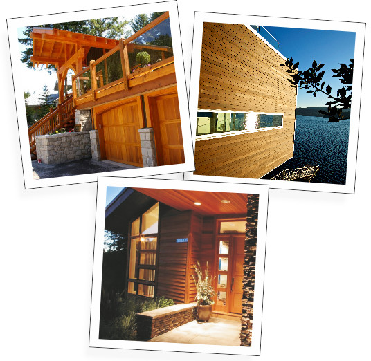 Západný červený céder, Thermowood, smrekovec a kanadská douglaska sa výborne hodia ako materiály na obklady fasád, ak sa nenechajú ošetriť a nechajú sa prirodzene starnúť.