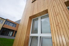 Sibírsky smrekovec má krásnu textúru s radiálnou a tangenciálnou štruktúrou vlákien a jemnými rastovými krúžkami vďaka pomalému rastu dreva. Vďaka vysokému obsahu živice sú uzly v tomto dreve väčšinou pevne spojené. Farba sibírskeho smrekovca je zlatá, svetlo červenkastá až svetlo hnedá s rôznymi odtieňmi a spolu s jeho priaznivými vlastnosťami je to obľúbený a vyhľadávaný druh dreva. Pri vystavení vonkajším vplyvom, najmä UV žiareniu a dažďu, drevo časom stratí svoju pôvodnú farbu, čo vedie k jeho starnutiu. Proces starnutia sa najčastejšie prejavuje zošednutím dreva. V dôsledku pôsobenia vlhkosti, zrážok a iných klimatických vplyvov môže drevo stmavnúť alebo dokonca zčernieť, ako je to v prípade iných druhov dreva. Na povrchu dreva sa objavujú praskliny spôsobené vysychaním a iné typické znaky dreva. Ak chcete obmedziť proces starnutia a predĺžiť pôvodnú farbu dreva, odporúča sa povrch ošetriť vhodným náterom, najlepšie obsahujúcim pigmenty, a starať sa o drevo. Ďalšie informácie o ošetrovaní a údržbe drevených fasád nájdete v technických informáciách v katalógu a na našej webovej stránke.
