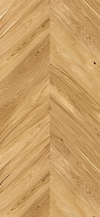 Podlahy Bright Chevron Oak sú vyrábané s menším počtom uzlov. Povrch je chránený prírodným olejom a zdobený kefovaním. Dosky sú zo všetkých strán skosené.