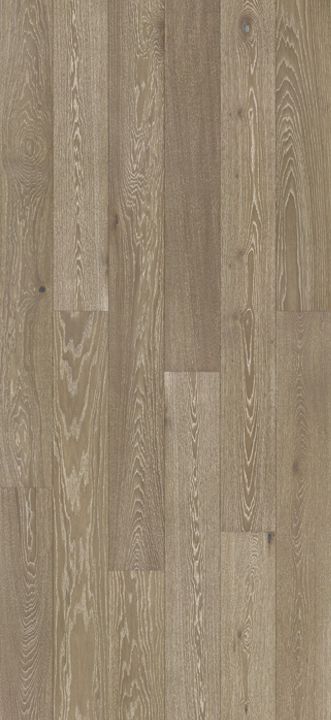 Toffee Grande trojvrstvová dubová podlaha v doskách s rozmermi 180 mm s veľkým množstvom uzlov. Dosky sú zvýraznené kefovaným povrchom a zo všetkých štyroch strán sú skosené. Povrch podlahy je namorený na hnedo a chránený prírodným olejom. Tento typ podlahy je vhodný pre podlahové kúrenie. Možno ju inštalovať ako plávajúcu podlahu alebo prilepiť.